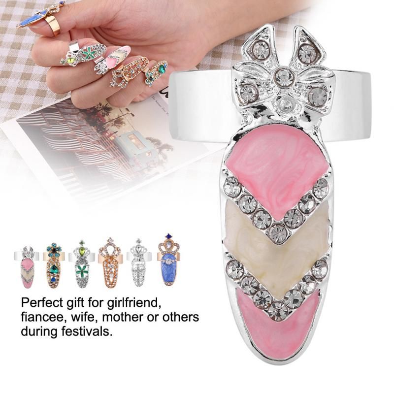 Amazon Com 1pc Finger Nail Art Design Ring Fake Nails Crystal