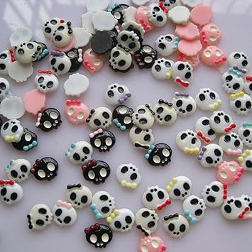 Eft 50pcs Punk Mixed Colorful Acrylic Bows Skull Head 3d Nail Art Tips Slice Flat Back Resin Cabochons