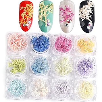 Qimyar 3d Nail Art Natural Coral Tree Dried Flower Manicure Tips Decoration Uv Gel Seal Sticker 12