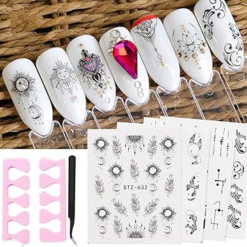 Amazon Com Nail Kit Nail Art 24 Sheets Black Designs Nail Art Water