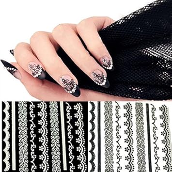Amazon Com Holrea 30 Sheets 3d Lace Nail Art Stickers Black White
