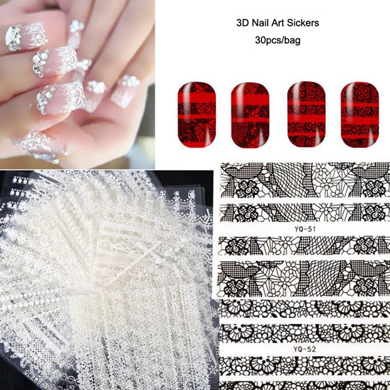 30 Sheets 3d Lace Nail Art Stickers Black White Diy Tips Decal