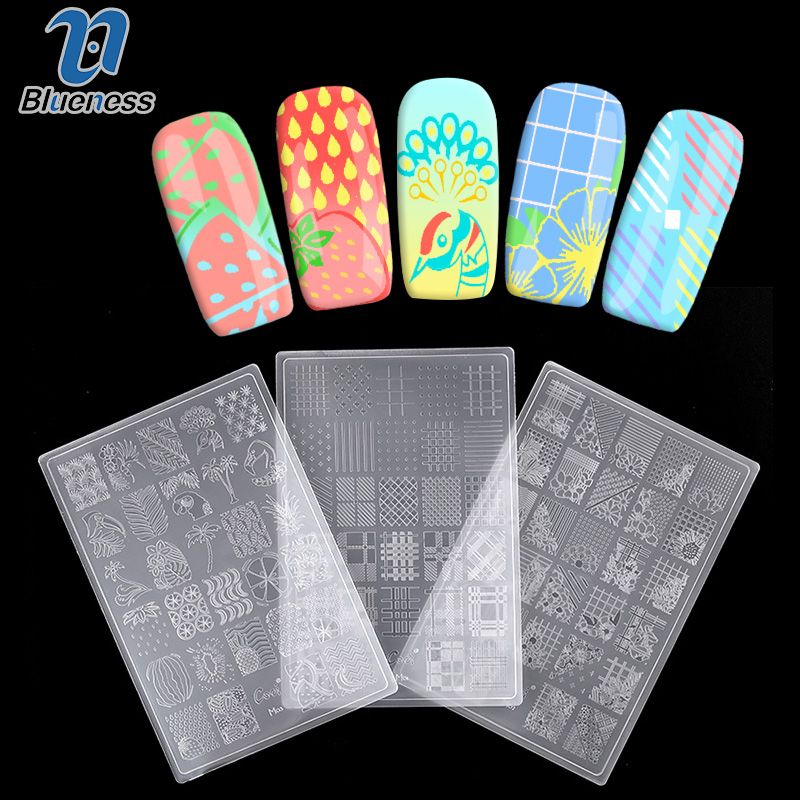 Blueness Stripe Flowers Design Transparent Nail Stamping Plate