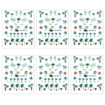 Amazon Com Oulii 6 Sheets Hawaii Coconut Palm 3d Design Nail Art