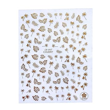 Gold 3d Nail Sticker Coconut Tree Leaf Holo Laser Amazon Com