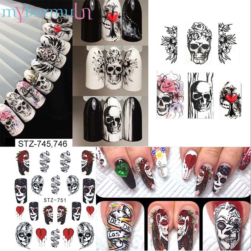 25 Sheets Halloween Design Nail Art Stickers Sets Black White Skull