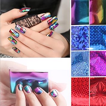 Amazon Com Nail Art Tips Design Transfer Foils Kit Adhesive Top