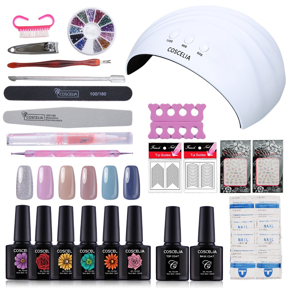 Amazon Com Coscelia Gel Nail Polish Starter Kit With Uv Led 24w                                                                                                                                     2019 Small Package 9w Cute Nail Art Gel Polish Lamp Led Uv Light
