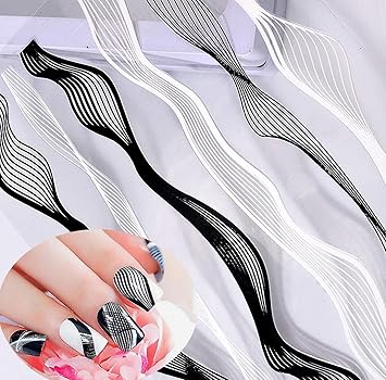 Amazon Com Banamic Gold Black White Nail Stickers Decals 3d Wave