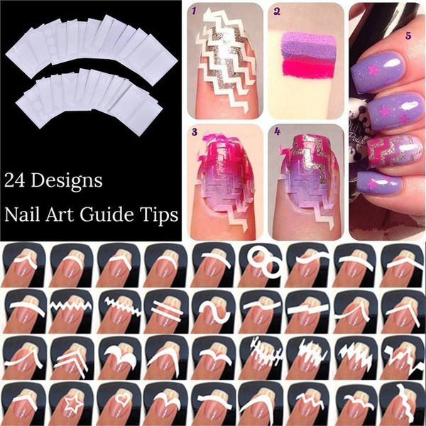 24 Styles Sheet Diy Stickers French Nail Art Tips Tape Guide Stencil