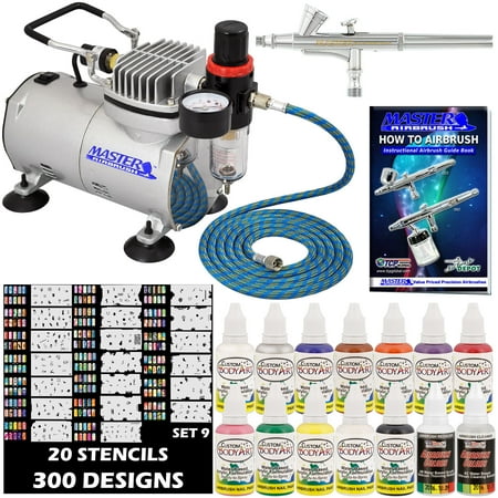 Nail Art Airbrush Kit Set Air Compressor Paint 20pk Stencil Design