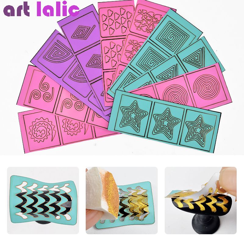 10 Sheets Diy Manicure Irregular Grid Stencil Reusable Nail Art                                                                                                                                     Nail Art Brushes Dotting Tools Nail Vinyls Accessories Live