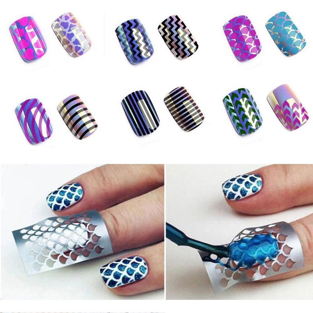 23 Sheets Diy Manicure Irregular Grid Stencil Reusable Nail Art                                                                                                                                     12tips Sheet Fashion Nail Art Manicure Stencil Sticker Vinyls Diy