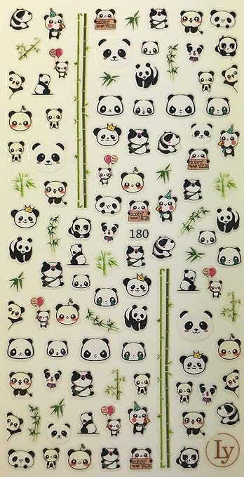 Amazon Com Nail Art 3d Decal Stickers Cute Panda Bears Bamboo Giant