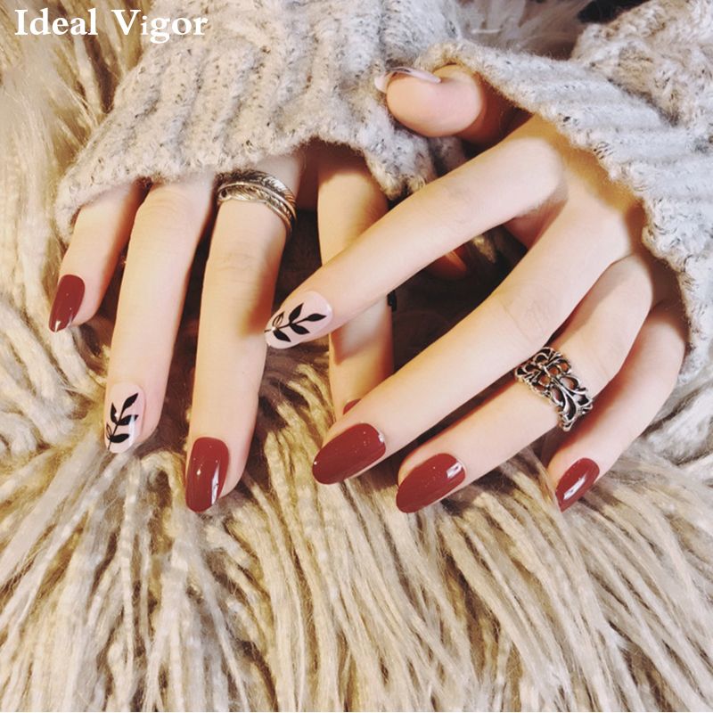 Sexy Red Wine Cat Eyas Design Fake Nails Round Top Nail Art Tips