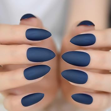 Amazon Com Misud 24pcs Blue Oval False Nails Simple Matte Nails