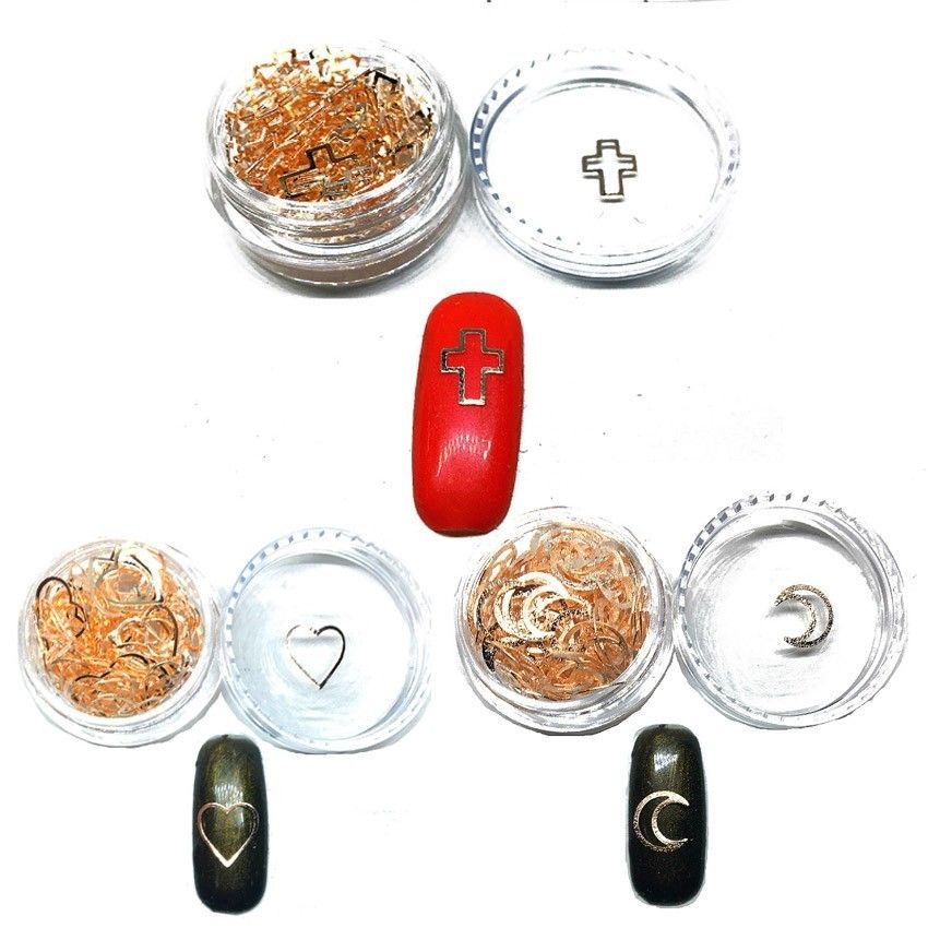 Box Heart Rose Gold Nail Art Decorations Hollow Cute 3d Stickers
