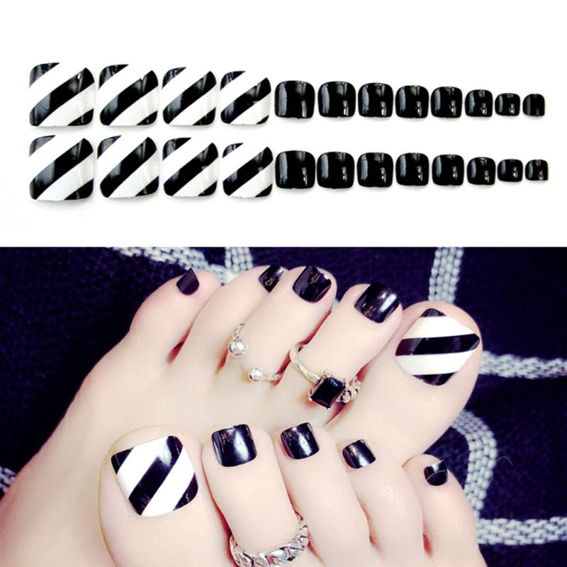 2018 Black And White Lines Nail Sticker Nail Tips Black Fake Toes