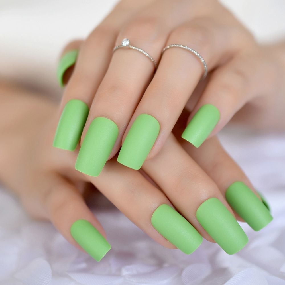 Delicate Square Nail Art Dry Dammit                                                                                                                                     Frosted Instant Fake Nails Matte Green Square Nails Art Diy Tips