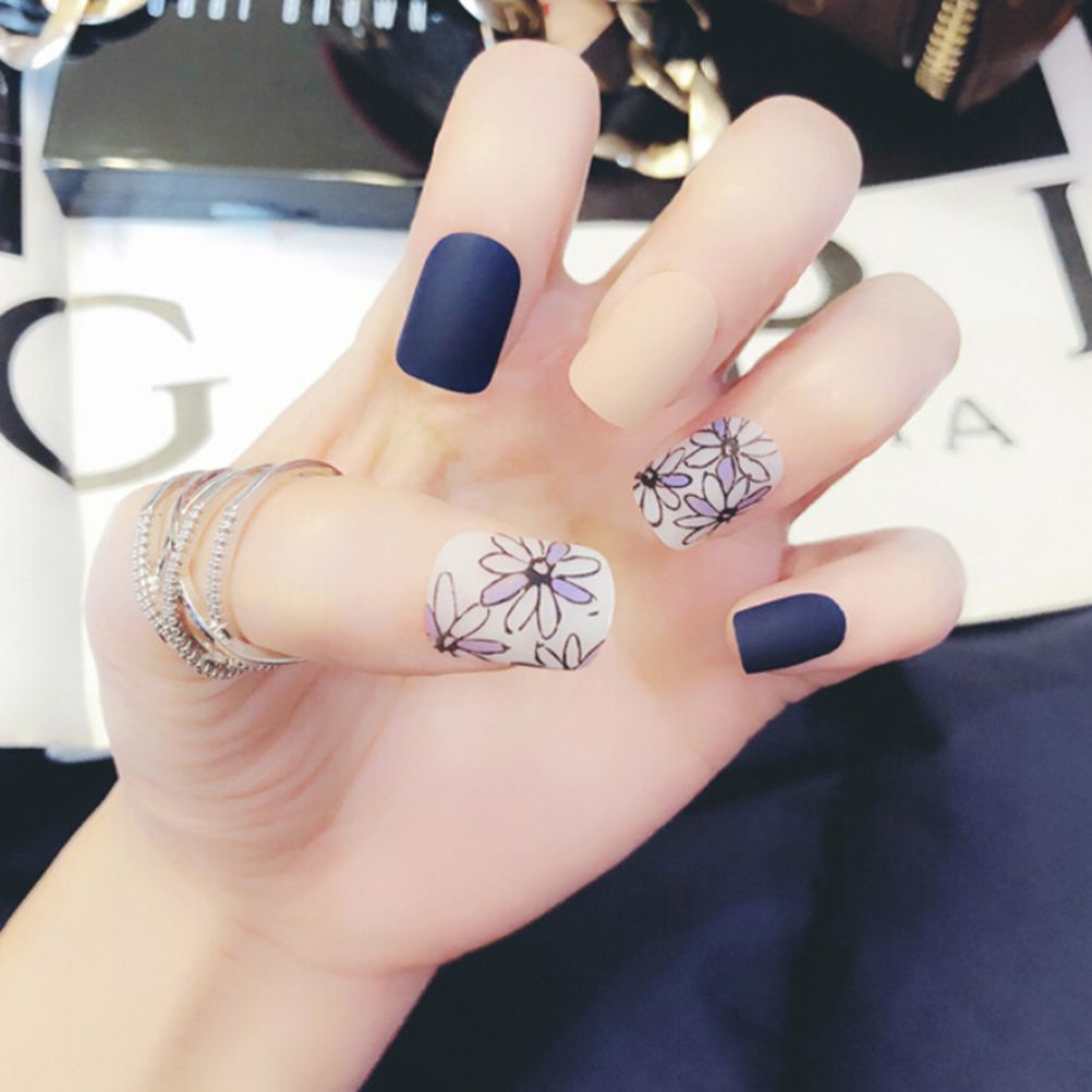 70 Square Nail Art Ideas Art And Design                                                                                                                                     New Charming Blue Fake Nail Tips Matte Full Cover False Nails Square