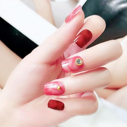 Nail Art Girls Nail Art Games You Look Summer Nail Designs For                                                                                                                                     Amazon Com Dongcrystal 24pcs Red Marble Texture Glossy False Nails