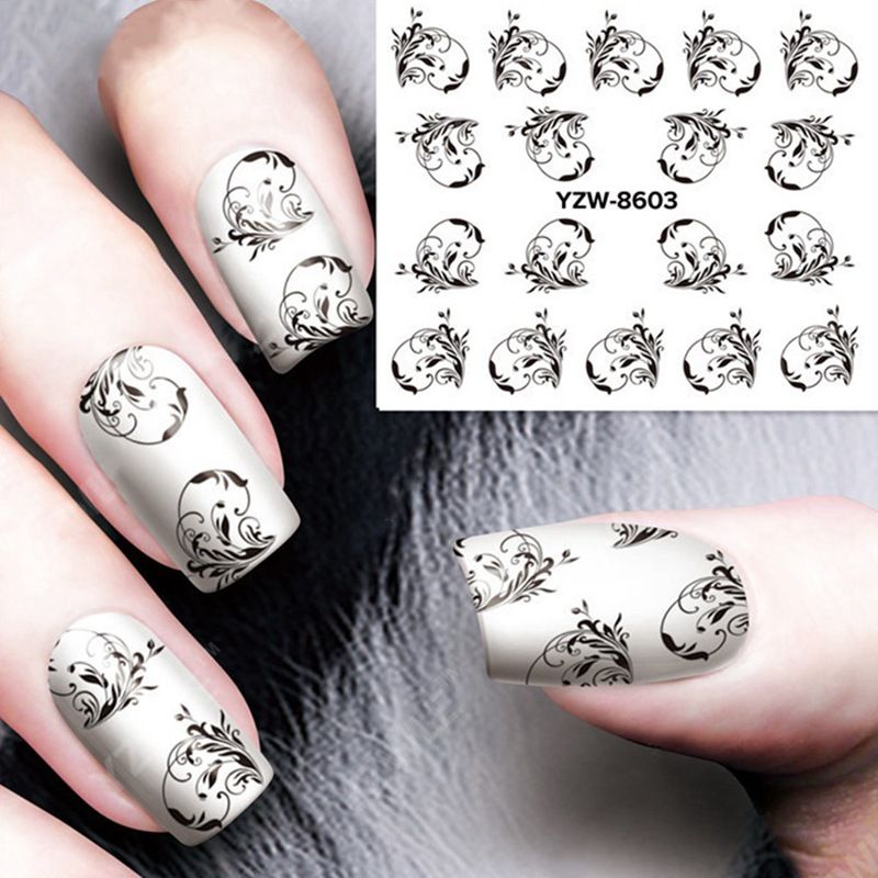 1 Sheet Black Flower Vine Nail Water Sticker Leaf Lace Design Slider