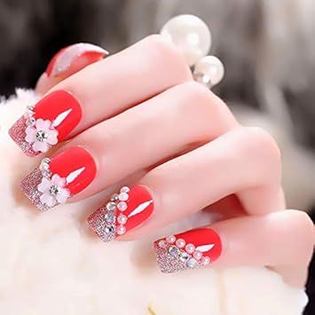 Amazon Com Fake Nails Medium Length Bride Wedding Dress Diy Nail