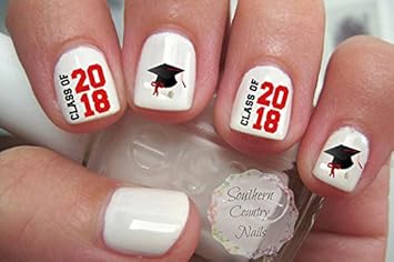 Amazon Com Graduation Class Of 2018 Red Nail Art Decals Beauty