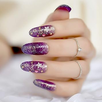 Amazon Com 24pcs Kit Sparkly Glitter Nail Art Tip Purple Color