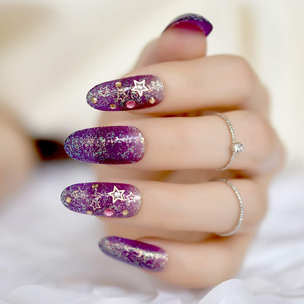 Amazon Com 24pcs Kit Sparkly Glitter Nail Art Tip Purple Color