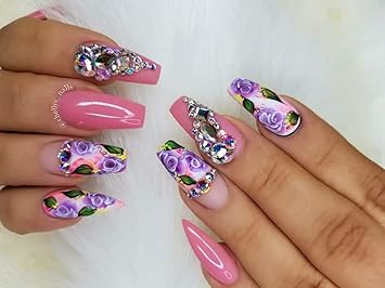 Fashion Pink Flower Nail Art Appealing Pink Nails With Red Glitter