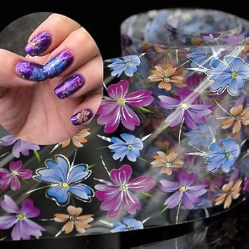Amazon Com Coolnail 4cm100cm Roll Purple Blue Orange Flowers