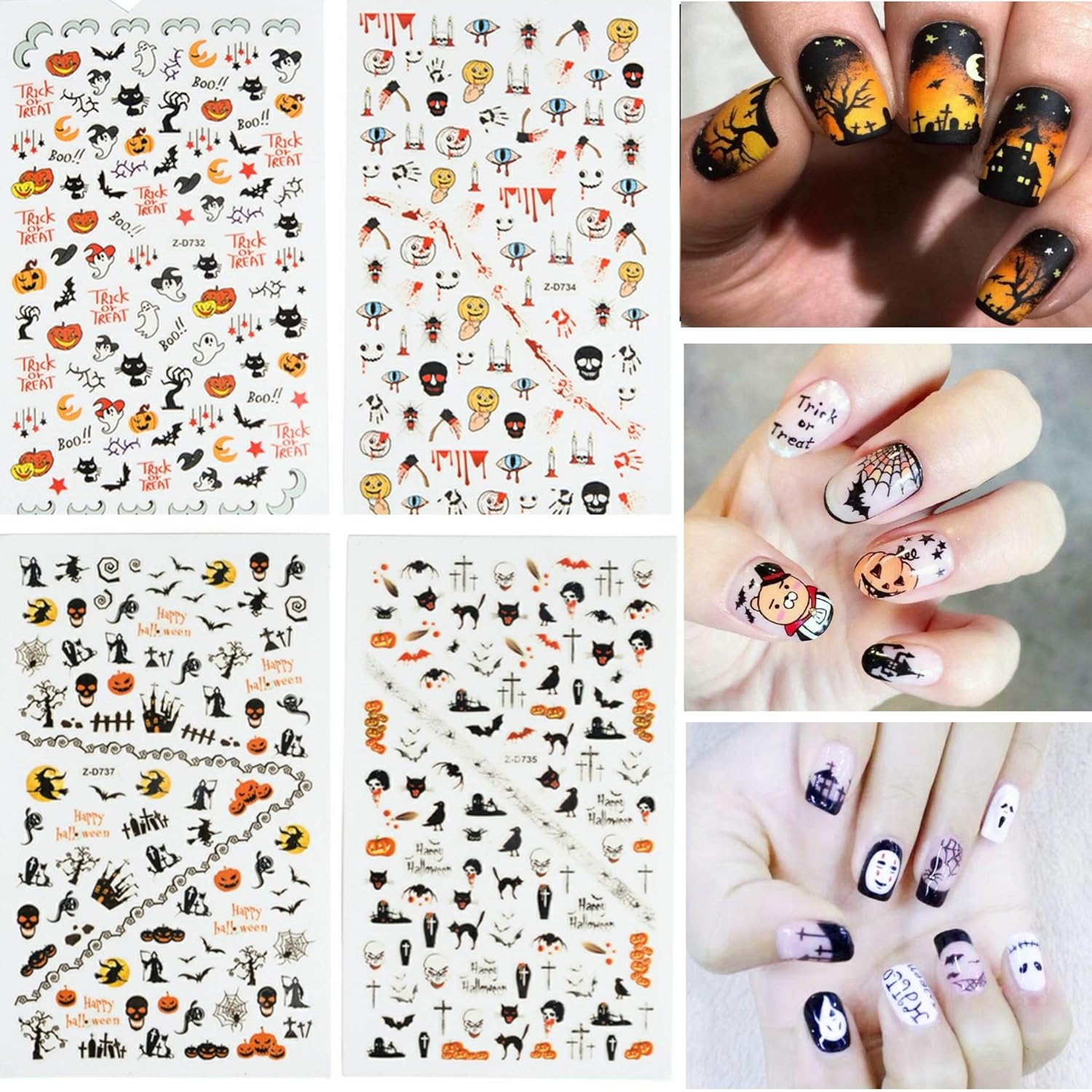 Amazon Com Dadiii Halloween Nail Art Stickers 4 Sheets Self