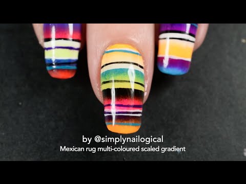 Multi Coloured Quadruple Scaled Gradient Mexican Rug Nail Art