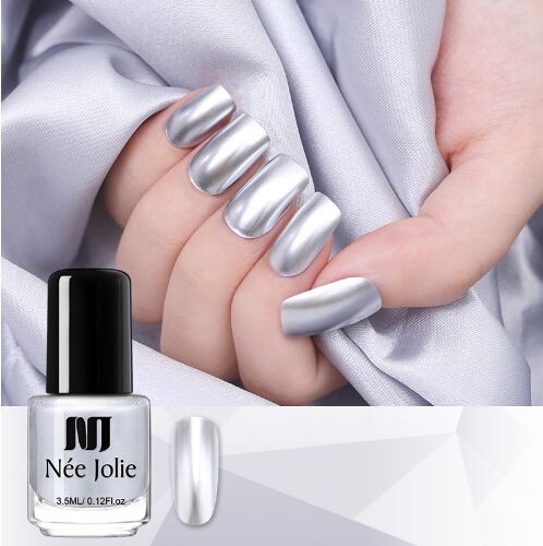 Nail Polish Varnish Mirror Effect Metallic Silver Chrome Nail Art