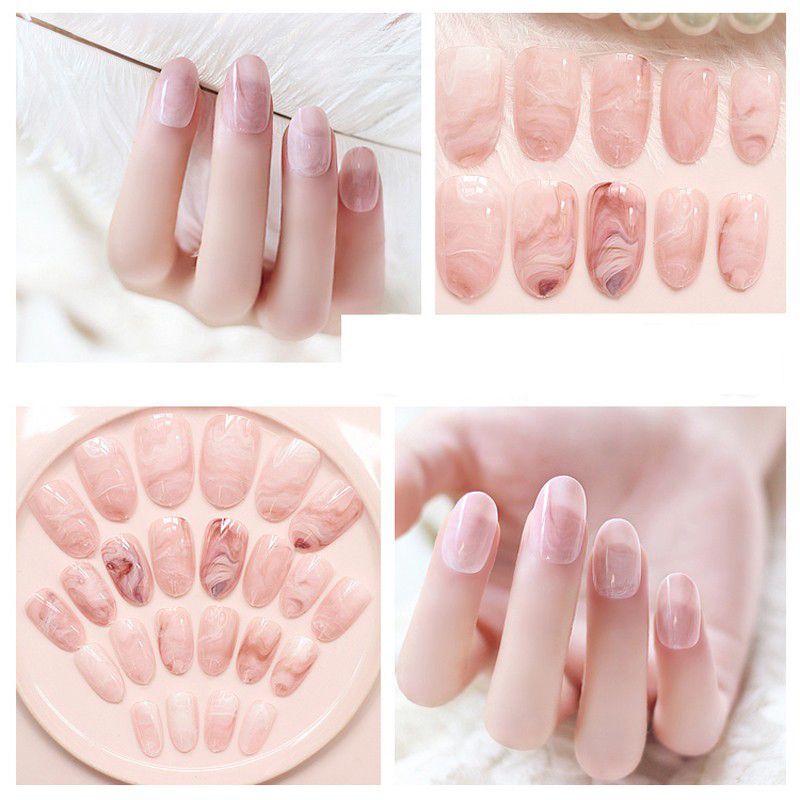 24pcs Set Grey Marble Design Lady Nails Acrylic Full False Nail Tips