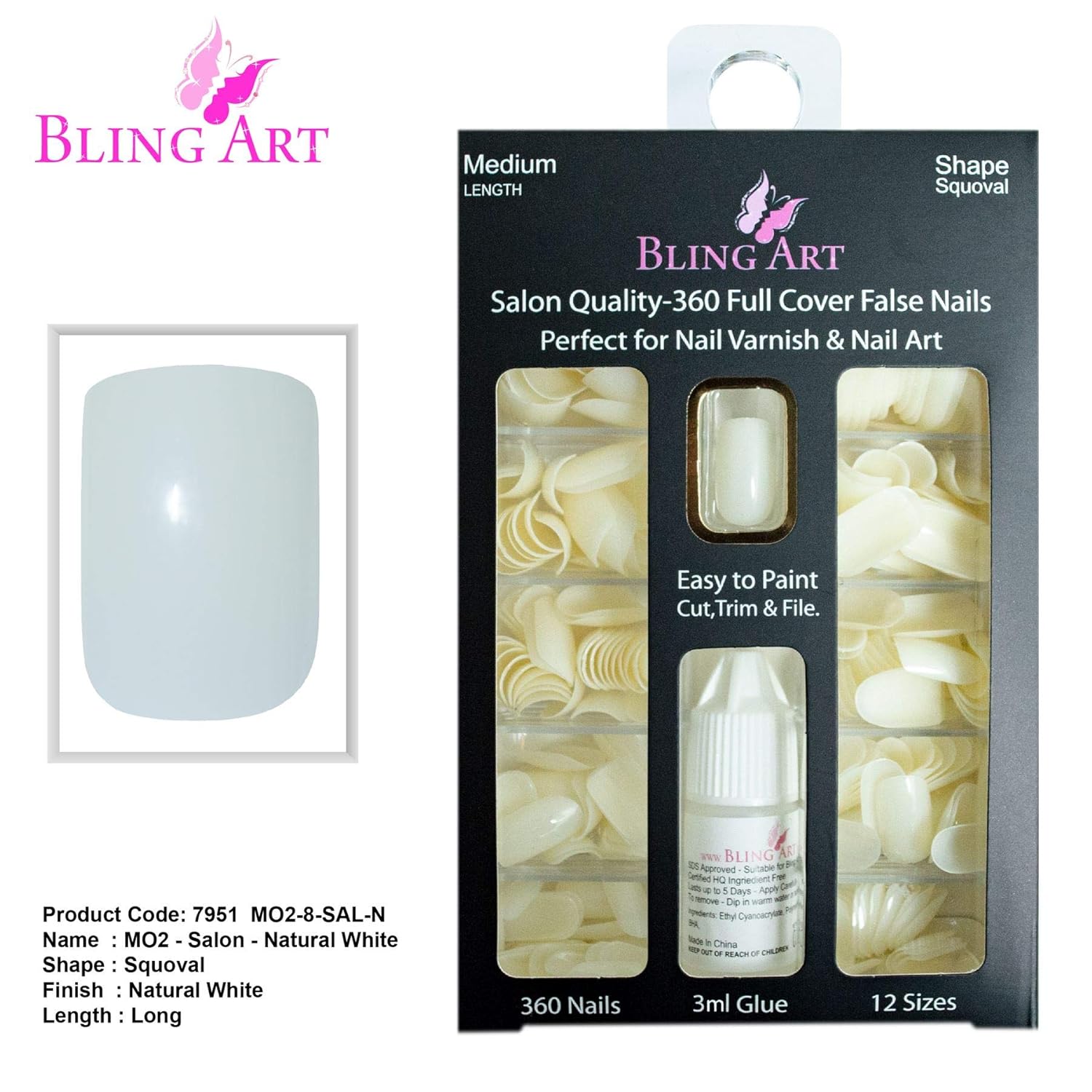 Amazon Com Bling Art False Nails 360 Squoval Long Natural White