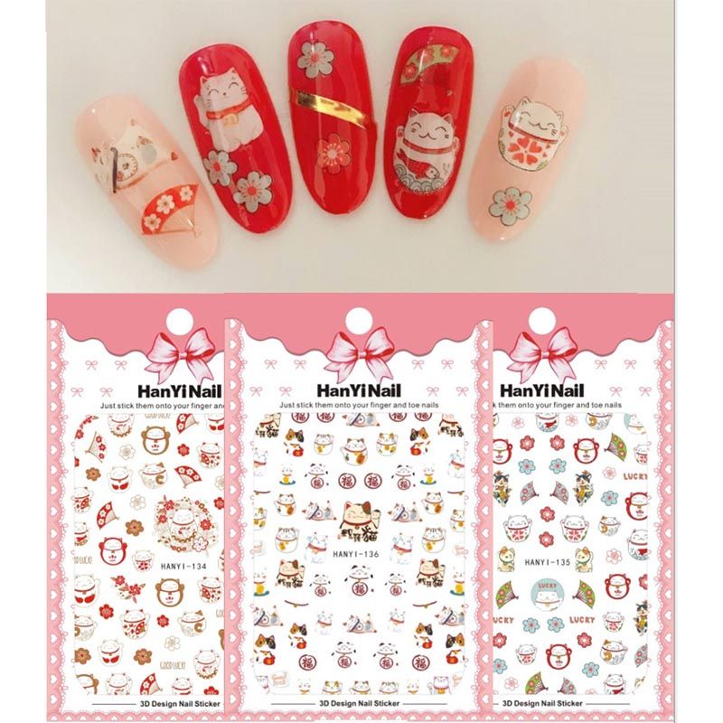 New Chinese Traditional Year 3d Nail Art Sticker Decals Lucky Cats
