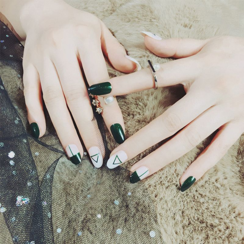 Summer Geometric Triangle False Nails Green Pre Design Round Head