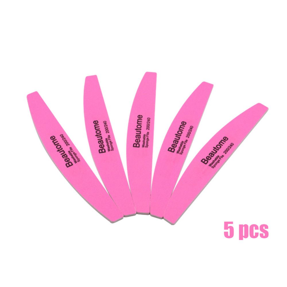 Beautome Hot Sale 5 Pcs Pink Half Moon Shape Manicure Washable Nail Files 200 240 2 Side Sandpaper Buffer Block Nail Art Tools