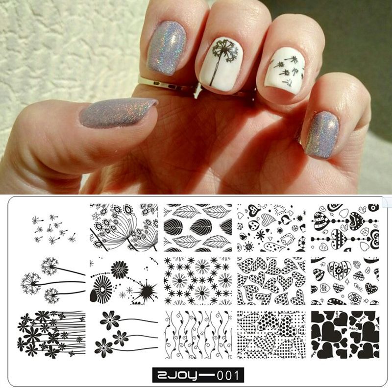 Zjoy Series Nails Flower Rectangle Nail Stamping Template Dandelion