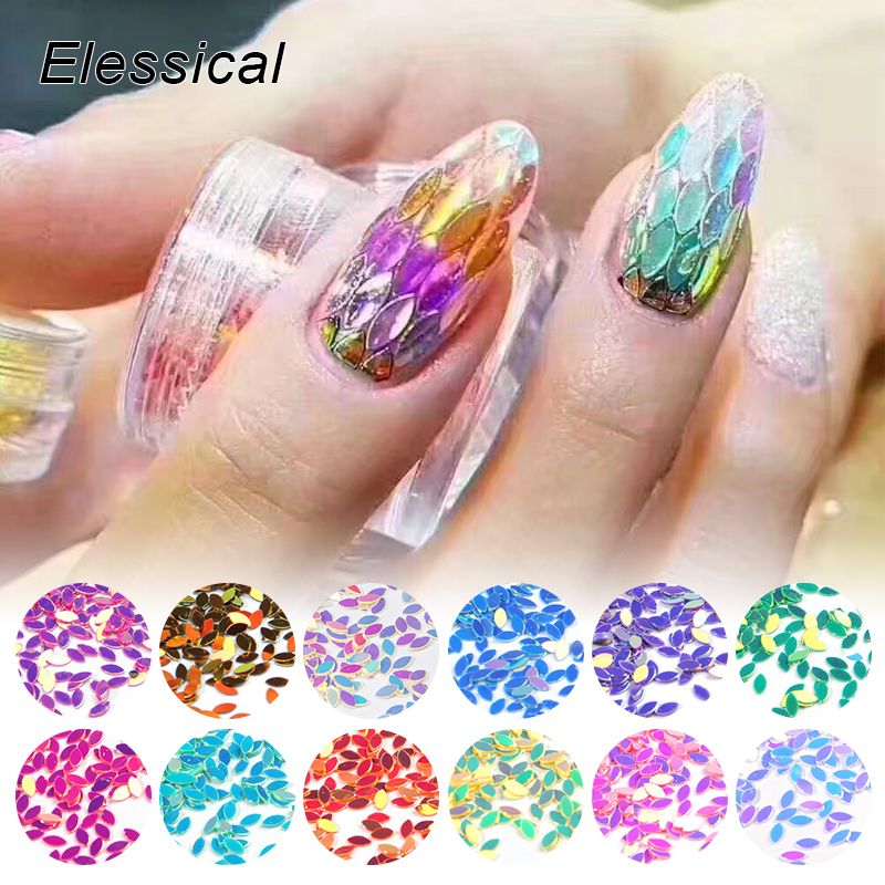 Elessical 10g Bag 5bags Lot Holographic Leaves Design Nail Art Glitter Horse Eyes Shape Thin Phosphor Decoration Manicure Decals For Nails