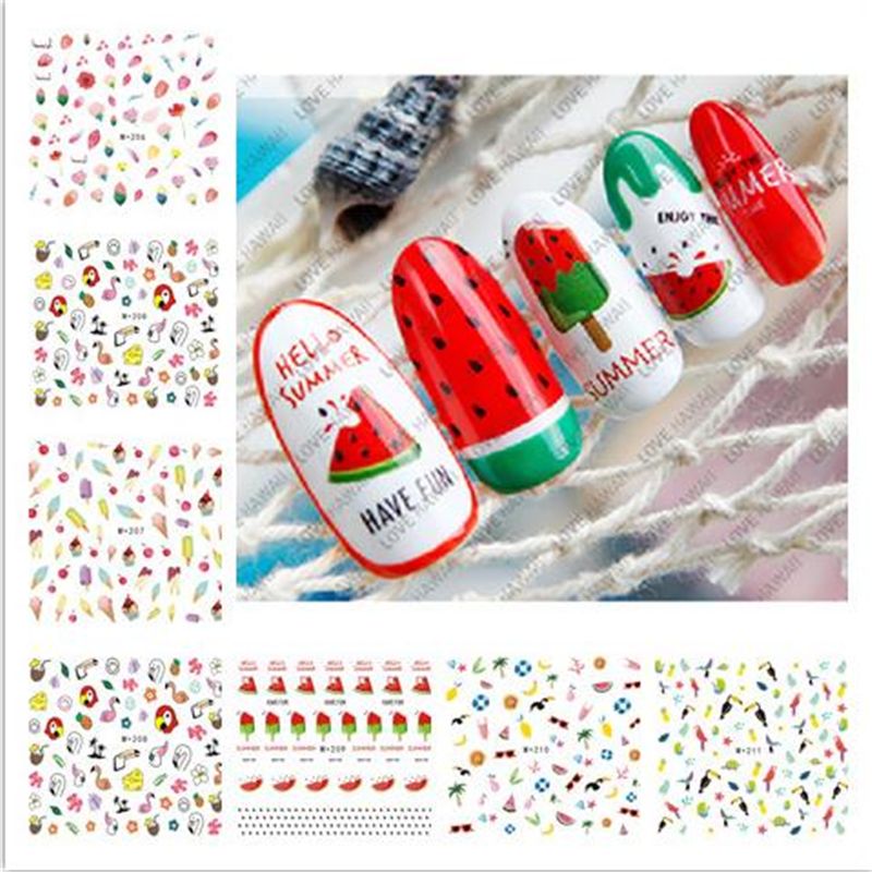 New Fashion Fruit Watermelon Flamingo Flower Candy Sun Nail Sticker Decal Water Transfer Sticker Nail Art Decals Diy Decor