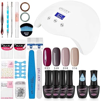 Amazon Com Gellen Gel Nail Polish Starter Kit With 24w Led Lamp