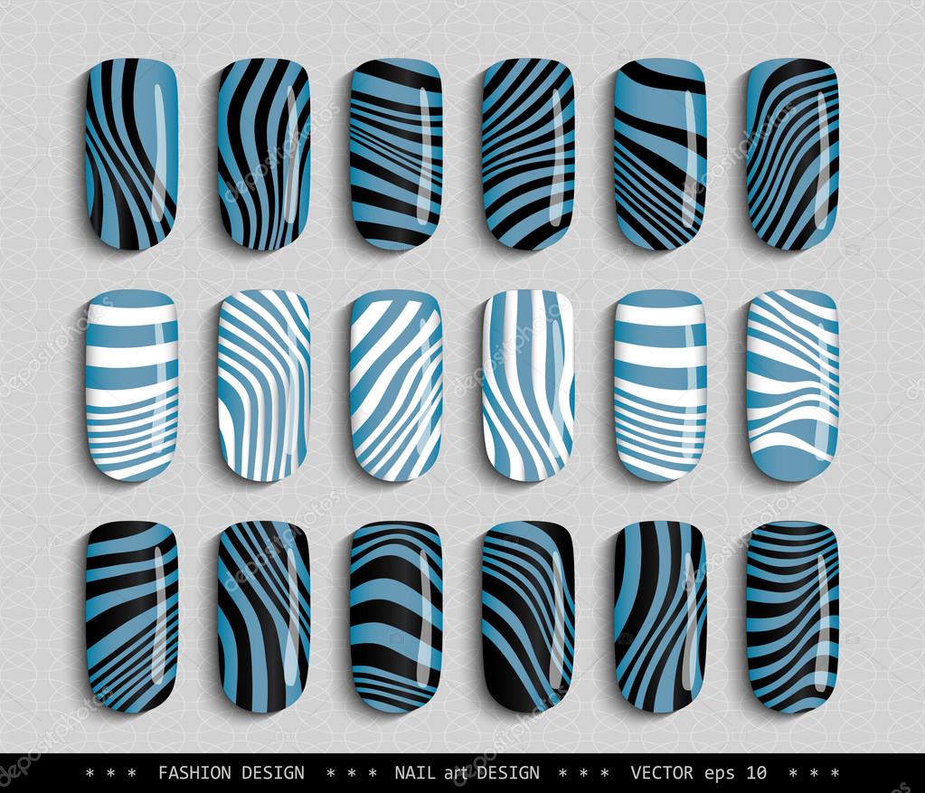Nail Art Design Blue Black White Striped Zebra Stock Vector