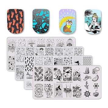 Amazon Com Beautybigbang 4pcs Nail Stamping Plate Summer Theme