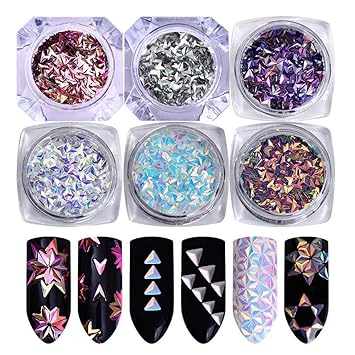 Amazon Com Nicole Diary 6 Boxes Chameleon 3d Nail Studs Sparkle