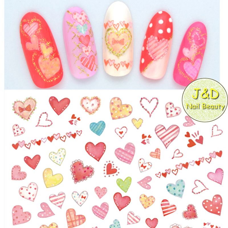 Lovely Heart Nail Art Sticker Romantic Coloful Decals Full Nail Wrap