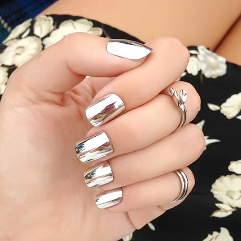 Compre Nuevas Unas Falsas Metal Silver Nail Art Nail Art Shiny Nail