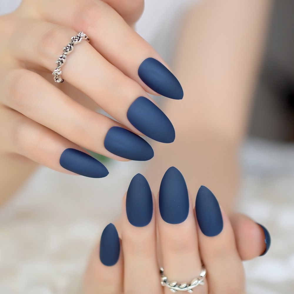 Eraser Surface Frost Nails Art Tips Gorgeous Steel Blue Stiletto Fake Nails Curved Stiletto Nail Tips Korea Fingernails 24